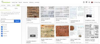 A look at a few recipes in the FamilySearch Memories section. Screenshot, Mdr, 27 Feb. 2021.
